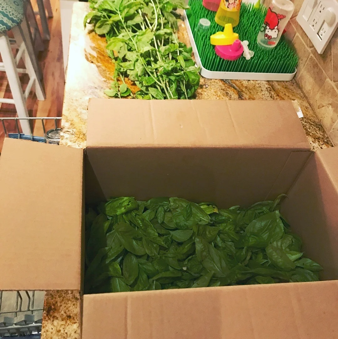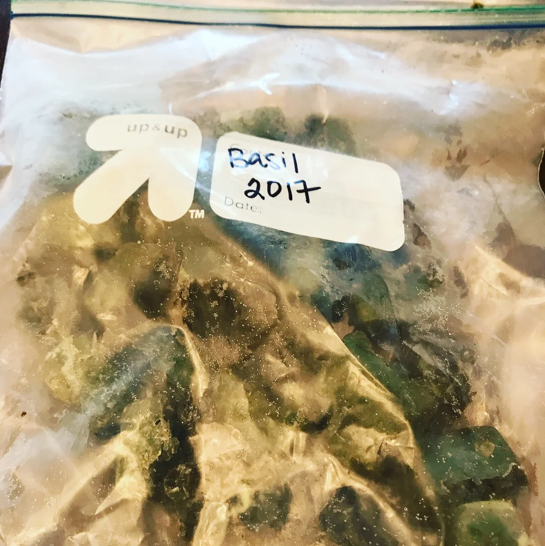 Every year we grow basil in the garden. It's pretty easy to grow but by the end of summer we have tons of lovely basil that we know won't make it through the first frost. So a few years ago I set out on a way to harvest and freeze our loads and loads of fresh basil to have all winter.